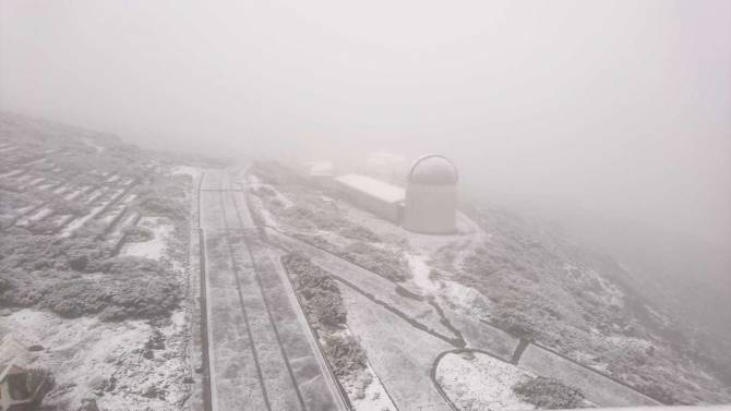 La gota fría que está atravesando Canarias ha dejado nieve en la cumbre La Palma desde las 16:30