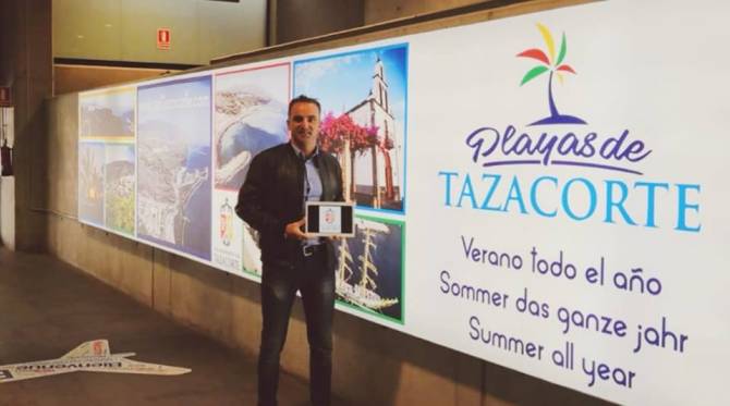 David Ruiz, destacó, ”dentro del Plan de Marketing Turístico Local, elaborado por la concejalía de Turismo al principio del actual mandato, se incluían los objetivos de crear una imagen corporativa de Playas de Tazacorte, un portal Facebook exclusivo municipal “visittazacorte” donde se han realizado varias campañas promocionales como por ejemplo concursos de fotografías, nuevos productos de “Merchandising” bajo el slogan “Tazacorte Enamora” distribuyéndose dichos productos promocionales en los eventos más importantes desarrollados en el municipio como el “Isla Bonita Love Festival” o “Transvulcania”, una nueva guía turística acorde a los nuevos diseños y tendencias, que la localidad estuviera presente en ferias internacionales como “Fitur” y “Seatrade Cruise Med” (donde se presento a Tazacorte como nuevo destino turístico de cruceros). Una serie de intenciones, ya realizadas, que han culminado con la presentación de la primera web oficial municipal de turismo”.