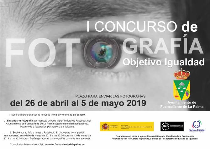 El Ayuntamiento de Fuencaliente de La Palma organiza el primer concurso de fotografía "Objetivo Igualdad" cuya finalidad es la de sensibilizar a la población contra la violencia de género. El concurso se realizará a través de la página oficial de Facebook del Ayuntamiento, a la cual los participantes deben enviar por mensaje privado sus fotografías con un máximo de dos por concursante.