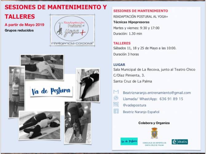 La Concejalía de Deportes del Ayuntamiento de Santa Cruz de La Palma ha organizado sesiones regulares de Readaptación Postural al Yoga+ en La Sala Municipal La Recova. Se basan en técnicas hipopresoras que tienen como objetivo normalizar y equilibrar el tono muscular.