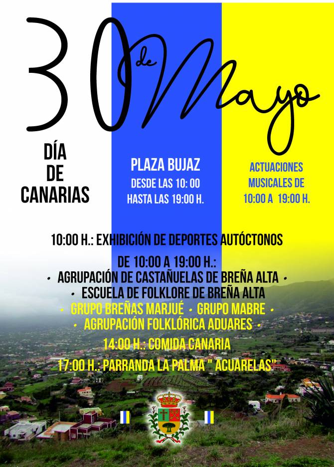 Las actividades previstas para este 30 de mayo en Breña Alta son de libre acceso por lo que desde el propio Ayuntamiento invitan “a todos los vecinos de la Villa y de la Isla a disfrutar con nosotros de este día festivo para los canarios”.