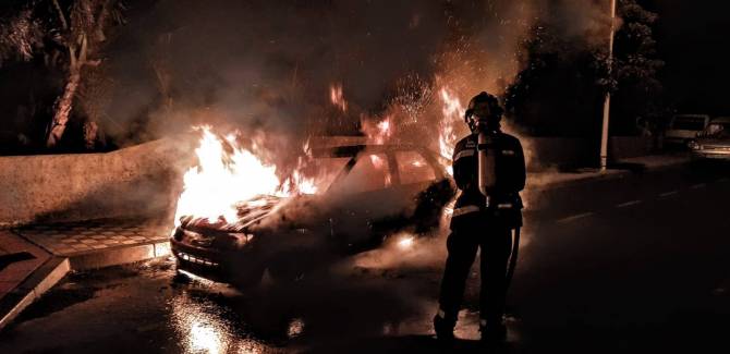 Durante la madrugada de este domingo, los bomberos del Parque Laguna y la Policía Local acudieron a la extinción del fuego de un vehículo en llamas en la zona de Las Rosas, en los Llanos de Aridane.