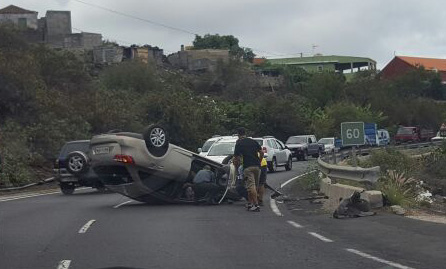 Vuelca su coche y queda atrapada dentro en Los Llanos de Aridane
