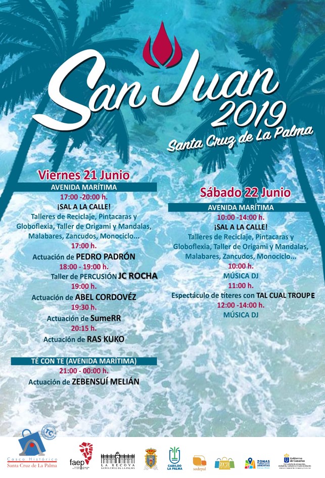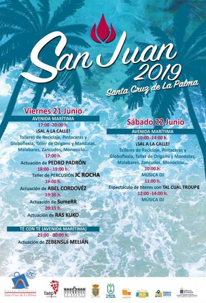 Un año más la Asociación de Empresarios Casco Histórico de Santa Cruz de La Palma ha organizado un amplio programa de actos para todos los públicos en torno a la celebración del Día de San Juan. En esta ocasión, las actividades se desarrollarán entre el viernes 21 y el sábado 22 de junio de 2019.