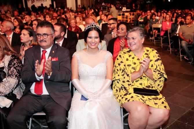 Otro de los momentos emblemáticos de la noche lo protagonizó el mantenedor de la Fiesta de Arte que hizo su aparición triunfal de la mano de la Reina de La Patona, Aroa Pérez Tejera a la que subió al escenario junto a su corte de honor acompañadas una a una por los miembros de la corporación municipal, presidida por la alcaldesa, Noelia García Leal. --En esta ocasión, la figura del mantenedor recayó sobre el exconsejero de Cultura y Patrimonio del Cabildo de La Palma, Primitivo Jerónimo que relató las idas y venidas de cientos de palmeros que cruzaron el Atlántico en barcos con nombre propio para emprender un viaje esperanzador, lleno de dificultades y miserias en alta mar y que no siempre culminó con un final feliz.