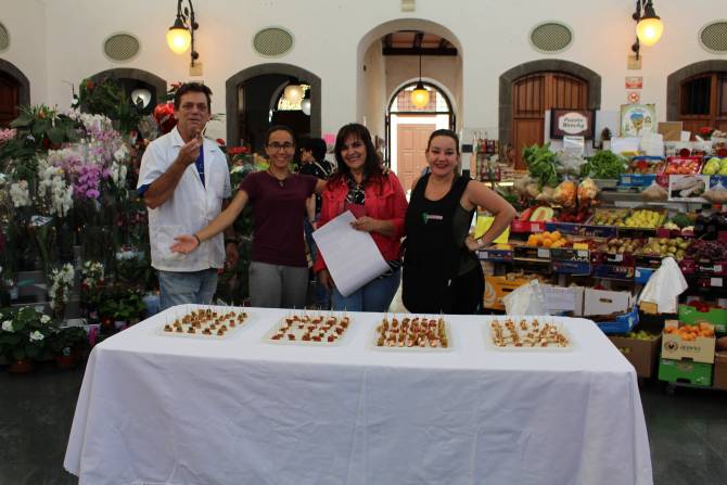 Los clientes del mercado pueden degustar cada día diferentes pinchos elaborados con ñame tanto en versión dulce como salada, ya que combina bien con muchos sabores. De hecho, el lunes se ofreció a los clientes con guindas en almíbar, con anchoas y con queso.