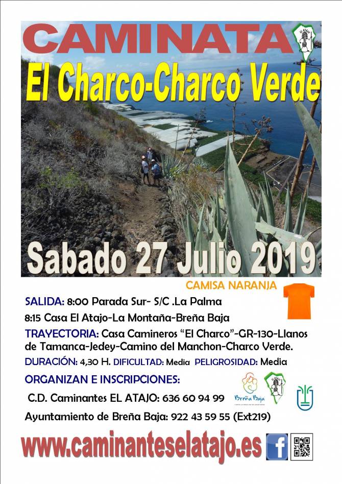 El sábado 27 de julio, el C. D. de Caminantes "El Atajo" y el Ayuntamiento de Breña Baja organizan, dentro del Programa de Senderismo de Breña Baja, la caminata nº 624: "Charco a Charco", con salida desde El Charco (Fuencaliente) hasta la playa de Charco Verde (Los LLanos de Aridane). Con opción a baño en la playa.