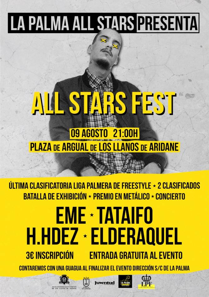 La Plaza del barrio de Argual, en Los Llanos de Aridane, concentrará este viernes 9 de agosto, a partir de las 21:00 horas, el festival juvenil de música rap All Stars Fest que reunirá en este núcleo aridanense a algunas de las jóvenes y consagradas promesas locales y regionales de este género musical.