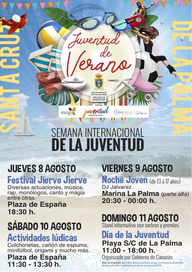 Finalmente, el domingo 1, Día Internacional de la Juventud, se instalará en la playa de Santa Cruz de La Palma un stand informativo con sorteos y premios entre las 11:00 y 18:00 horas. Esta actividad está organizada por el Gobierno de Canarias.