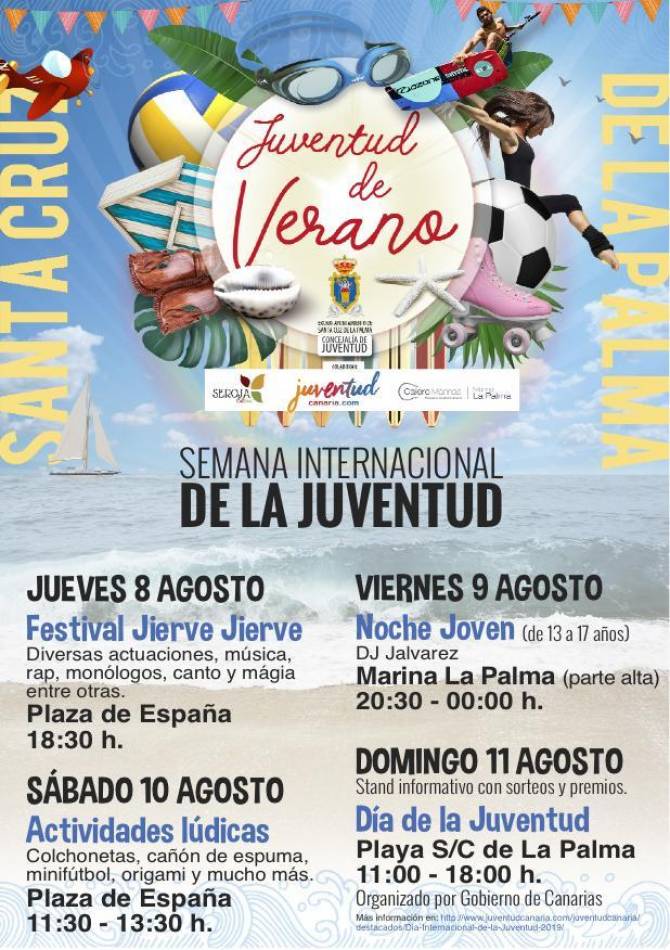 La Concejalía de Juventud del Ayuntamiento de Santa Cruz de La Palma, que dirige Virginia Espinosa, ha decidido organizar un programa de actos que, bajo el lema ‘Juventud de verano’, agrupa los eventos que se celebrarán esta semana destinados a los y las jóvenes de la capital.
