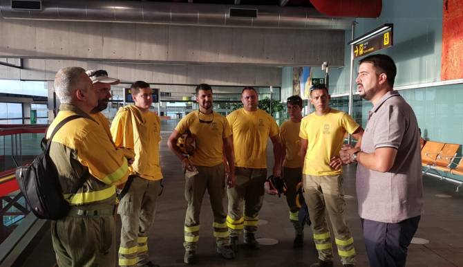 El consejero de Medio Ambiente de La Palma, Borja Perdomo, que acompañó hoy al aeropuerto a este equipo, confió en que “el trabajo y la profesionalidad de todos los que están participando en las labores de extinción, ayuden a que el fuego pueda ser controlado cuanto antes y deje de ser un peligro para las personas y para el patrimonio natural de Gran Canaria”.