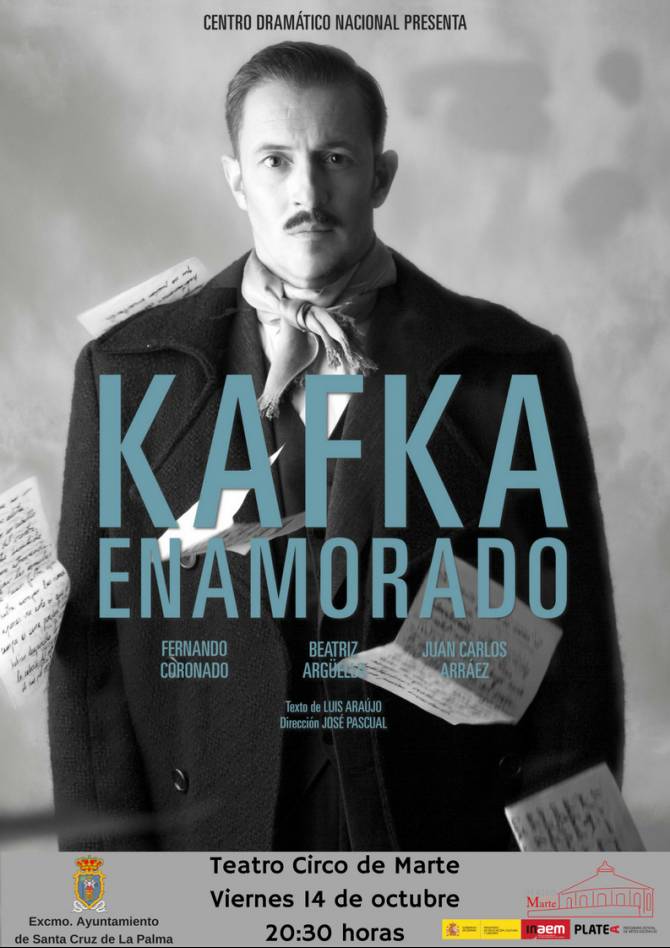 El Teatro Circo de Marte de Santa Cruz de La Palma acoge el próximo viernes, a las 20:30 horas, la función Kafka enamorado una obra en torno a la contradictoria relación que mantuvieron el famoso novelista Franz Kafka y Felice Bauer.