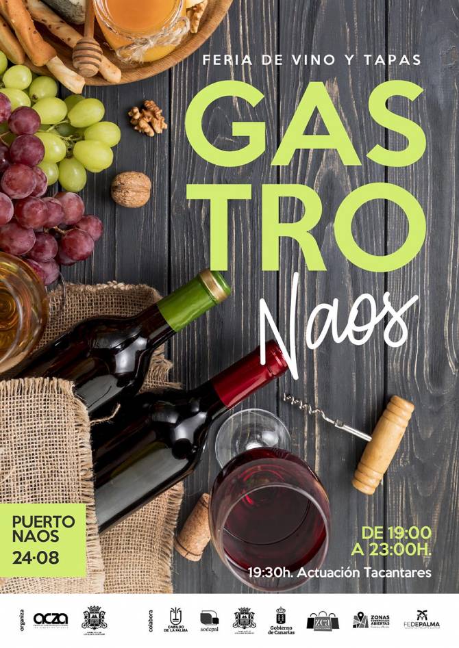 La avenida principal del barrio aridanense de Puerto Naos acogerá este próximo sábado, 24 de agosto, una feria de tapas ofrecidas por diferentes establecimientos del municipio. Desde las 19:00 horas, las personas que acudan a la cita gastronómica podrán degustar platos de diversa clase, acompañados de vinos con Denominación de Origen de La Palma y cervezas artesanales de la isla.