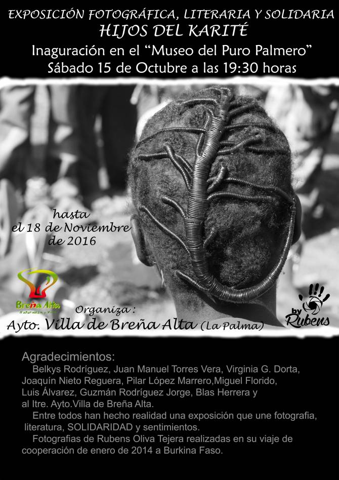 La muestra, que será inaugurada el próximo sábado, 15 de octubre, a las 19:30 horas, está organizada por el Ayuntamiento de la Villa de Breña Alta y consta de 18 fotografías a color de 30x40 centímetros sobre cartón a pluma. Las imágenes fueron tomadas por Rubens Oliva en un viaje de cooperación a Burkina Faso en enero de 2014 y las mismas están acompañadas por microrrelatos de diversos escritores.