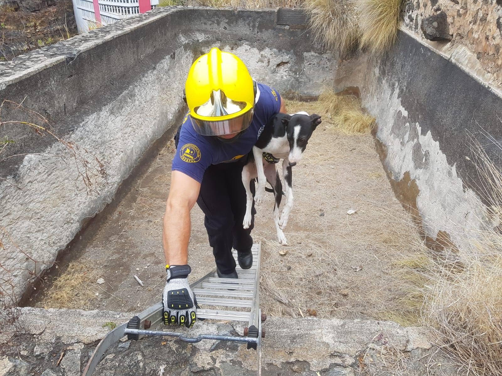 Los Bomberos del Parque La Grama han rescatado, durante la tarde de ayer, a un perro que no podía salir de un estanque vacío cercano al campo de fútbol del CD Mensajero, en Santa Cruz de La Palma.