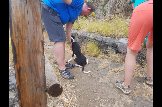 Los efectivos recibieron el aviso de dos senderistas italianos que se percataron de que el animal estaba atrapado y, mientras uno de ellos acudía a pedir ayuda, el otro se quedó haciendo compañía al perro hasta que llegaran a rescatarlo.