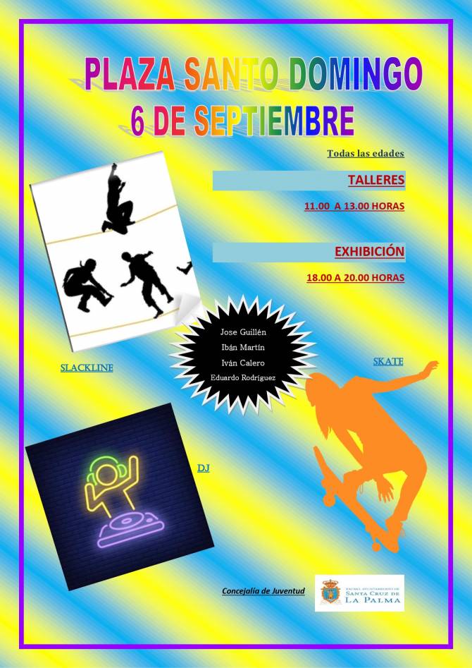 La Concejalía de Juventud del Ayuntamiento de Santa Cruz de La Palma ha organizado para el día 6 de septiembre una serie de talleres para todas las edades que se llevarán a cabo en la Plaza de Santo Domingo.