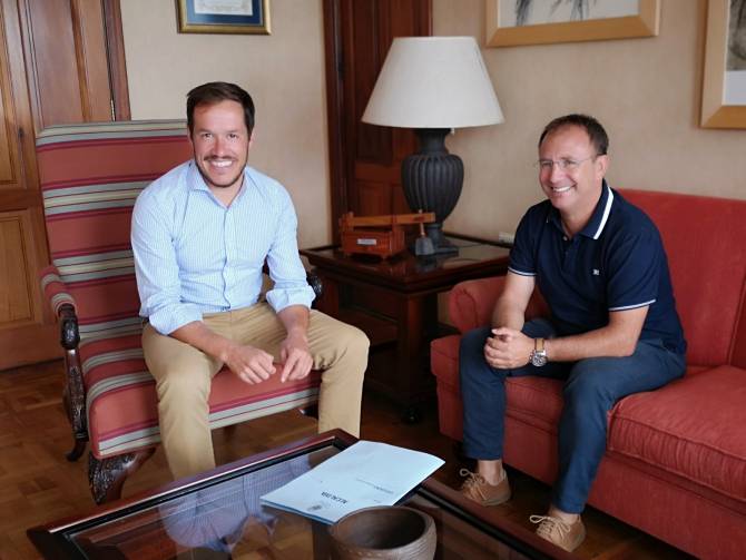 Durante la mañana de hoy lunes, el presidente del Cabildo, Mariano Hernández y el alcalde de El Paso, Sergio Rodríguez, han mantenido un primer encuentro de esta legislatura para tratar diferentes asuntos estratégicos para el municipio, vinculados al sobrecoste del agua, el desarrollo de infraestructuras turísticas y el respaldo a nuevos proyectos que se promueven desde la corporación municipal.