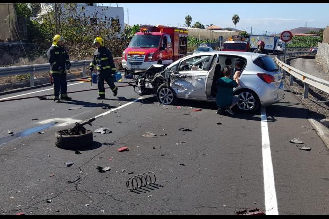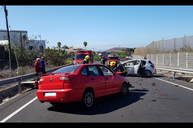Tres mujeres han resulado heridas sobre las 11:11 horas de esta mañana en una colisión entre dos vehículos en la vía de circunvalación de Los Llanos de Aridane.