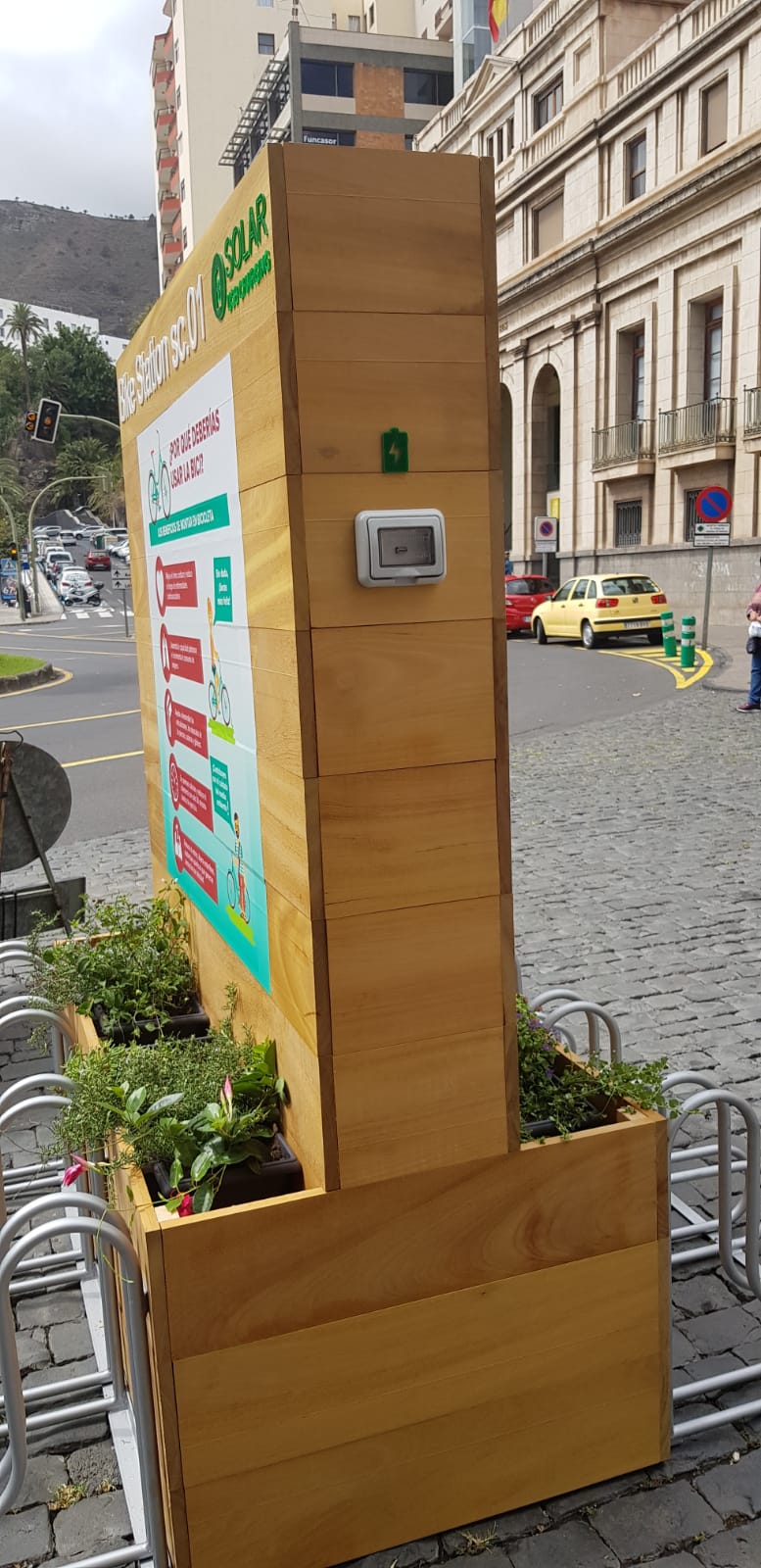 El Ayuntamiento de Santa Cruz de La Palma acaba de instalar un estacionamiento para bicicletas con un punto de recarga de móviles en la entrada sur de la ciudad, cerca de la entrada de la Calle O’Daly. “Este es un proyecto piloto al que se unirán otros en el futuro”, ha indicado el concejal de Medio Ambiente, Bernardo López, quien ha añadido que el punto de recarga funciona mediante placas solares, “fruto de la implicación del consistorio con la sostenibilidad medioambiental y energética”.