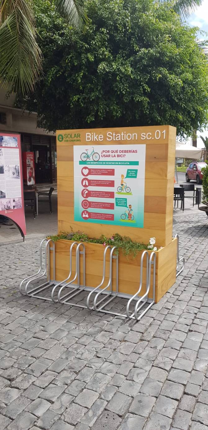 Nuevo aparcamiento de bicicletas con punto de recarga de móviles en Santa Cruz de La Palma