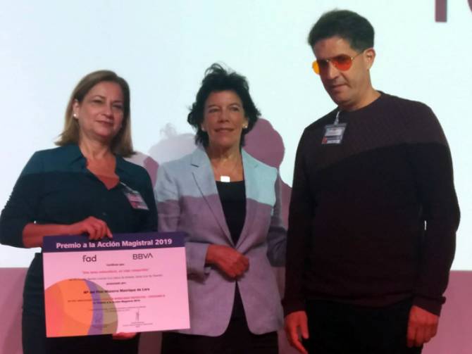 La directora del IES Eusebio Barreto, Pino Mazorra, recibió este sábado en Madrid el Premio a la Acción Magistral 2019 en la categoría B por el proyecto “Una tarea comunitaria, un viaje compartido”, de manos de la ministra de Educación en funciones Isabel Celáa. El galardón es un reconocimiento a la labor de innovación pedagógica que se viene desarrollando en el centro desde 2012 para convertirlo una auténtica comunidad de aprendizaje, donde familias e instituciones participan y se implican en el proceso de aprendizaje del alumnado. A la entrega asistió el presidente del AMPA, Román Ventura, en reconocimiento a la colaboración y el apoyo prestado por los padres y las madres a este proyecto y su compromiso con el centro y la educación.