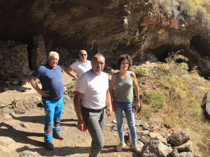 Proteger el yacimiento arqueológico y, al mismo tiempo, hacer posible las visitas y el recorrido por una parte de la Cueva del Tendal, en el Barranco de San Juan, es uno de los objetivos marcado por el Cabildo de La Palma en materia de patrimonio. Con este fin, la consejera de Cultura y Patrimonio Histórico, Jovita Monterrey, realizó una visita a este enclave ubicado en Los Galguitos, en San Andrés y Sauces, acompañada del Jefe de Sección de Patrimonio Histórico y Arqueológico, Jorge Pais, y otros técnicos del Cabildo.