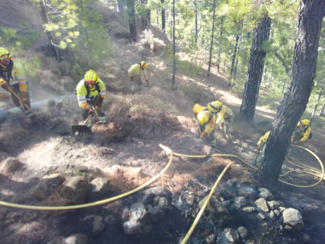 Los medios terrestes y aéreos de las BRIF de Puntagorda y Medio Ambiente han logrado controlar el conato de incendio declarado durante la mañana de hoy en Biestras, Garafía. La superficie afectada es de unos 300 metros y por el momento se desconocen las causas.
