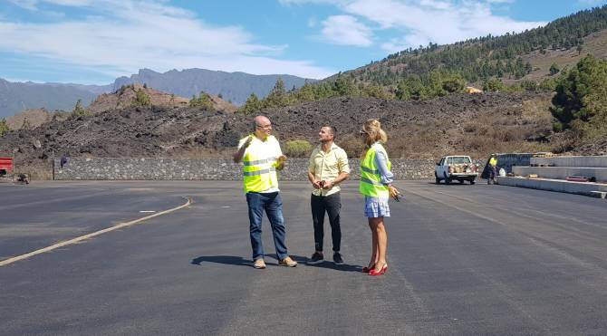 Pestana conoció el avanzado estado de los trabajos, junto con la primera teniente de alcalde de El Paso y consejera del Cabildo, Ángeles Fernández Acosta, y el concejal de Obras, Eloy Martín. En estos momentos se está procediendo al asfaltado del complejo.