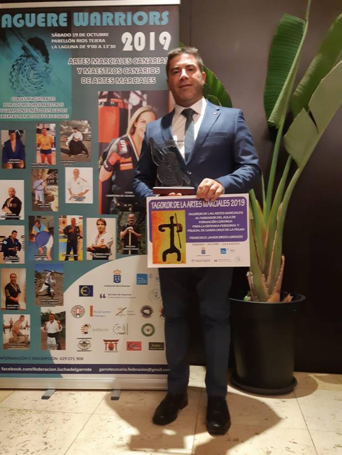 El premio recibido en La Laguna, ha sido por el trabajo desarrollado en el aula de formación continua de Santa Cruz de La Palma, que se encuentra en el Pabellón Municipal Roberto Rodríguez Estrello, donde imparte clases de defensa personal y defensa personal policial. Con anterioridad a la entrega de premios, se celebró el ‘Aguere Warrior 2019’ en el que participaron maestros de varias disciplinas que se practican en Canarias. Por la noche, la gala culminó con la entrega de premios.