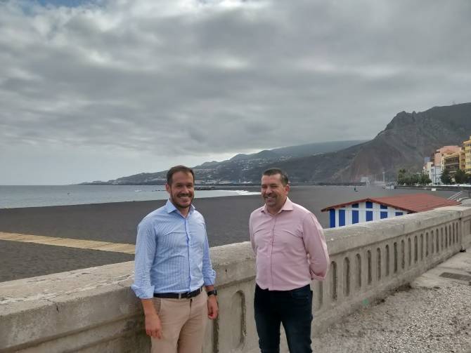 El Cabildo de La Palma apoya económicamente al Ayuntamiento de Santa Cruz de La Palma para que éste afronte la dotación de equipamiento y de medidas de accesibilidad a la playa de la capital. El presidente de la primera institución insular, Mariano H. Zapata, y el alcalde de la ciudad, Juanjo Cabrera, abordaron este asunto en una visita que realizaron a este espacio.