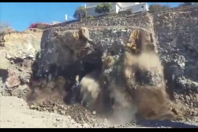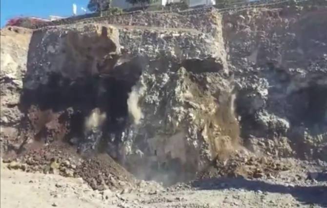 En las imágenes, al parecer tomadas por los propios trabajadores, se puede observar cómo la pared de piedra comienza a desplomarse progresivamente hasta que gran parte de ella cae al suelo provocando una gran pantalla de tierra. Una de las mayores preocupaciones ha sido el daño que podríansufrir las viviendas situadas en la parte superior de la ladera, sin embargo, por el momento no se han lamentado grandes daños.