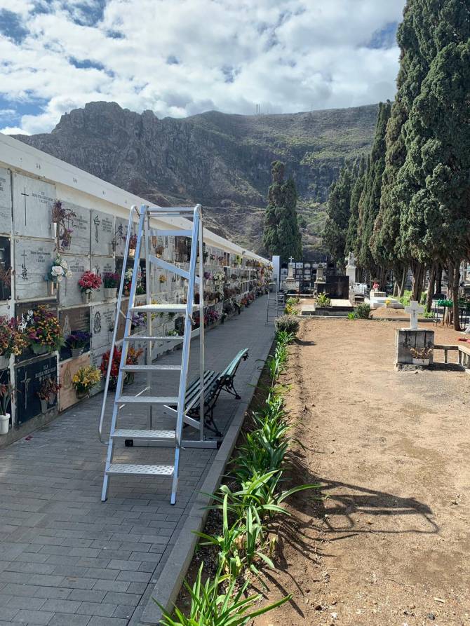 El Ayuntamiento de Santa Cruz de La Palma, a través de la Concejalía de Servicios, está implementando los servicios en el Cementerio Municipal de cara a los días 31 de octubre y 1 de noviembre, cuando se celebra el ‘Día de difuntos’. Entre las acciones que está llevando a cabo destaca la mejora de la accesibilidad a las instalaciones y los servicios al ciudadano.