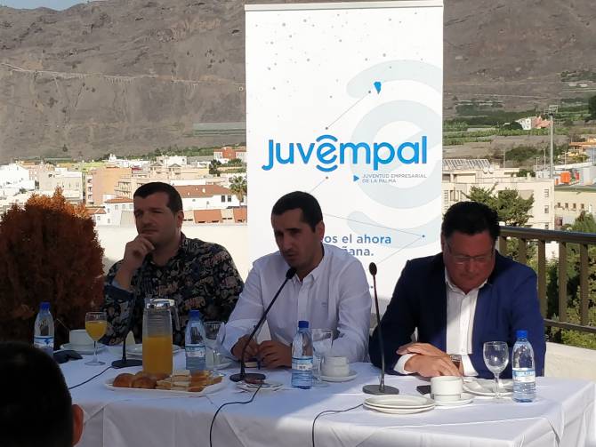 El candidato del PP al Senado, Borja Pérez Sicilia, junto al número tres al Congreso de los Diputados por Santa Cruz de Tenerife, Ernesto Aguiar, han mantenido un encuentro con jóvenes empresarios de La Palma, organizado por JUVENPALM. Durante el desayuno se han puesto sobre la mesa temas de plena actualidad como las ventas por internet, la exportación de productos así como el transporte en la isla. Los candidatos han mostrado, una vez más, el firme compromiso del Partido Popular de trabajar, mano a mano, junto a los autónomos y empresas de La Palma no solo en el inicio de la actividad, sino a lo largo del tiempo para que logren consolidar sus negocios, y contribuyan a la creación de empleo en la isla.