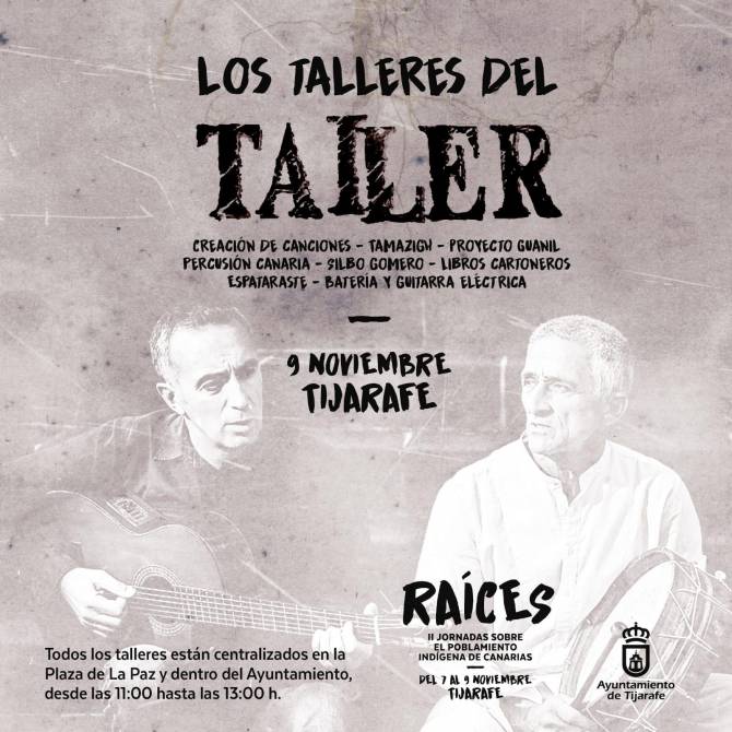 La iniciativa pedagógica del grupo musical Taller Canario, “Los talleres del Taller”, completará el programa de la segunda edición de las jornadas “Raíces”, centradas en el mundo indígena canario, que tendrán lugar en Tijarafe del 7 al 9 de noviembre.