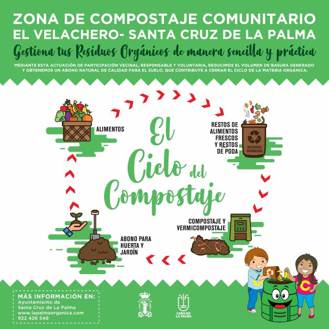 La Concejalía de Desarrollo Local, a través de la Agencia de Desarrollo Local de Santa Cruz de La Palma y de ADER La Palma, ha abierto el plazo de inscripción para participar en la nueva campaña de este proyecto, que se ha ubicado en El Velachero. Todos los vecinos y vecinas de la ciudad pueden informarse y participar acudiendo al punto de compostaje los martes de 17:00 a 18:00 horas.