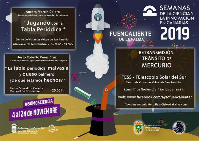La concejal de Cultura y Educación, Celia Santos, señala que los actos programados, y que se enmarcan dentro del programa 'Acércate a la Ciencia y la Innovación', comenzarán el miércoles 6 de noviembre, de 9:00 a 14:00 horas, en el Centro de Visitantes del Volcán de San Antonio, donde la doctora en Química por la Universidad de La Laguna, Aurora Martín Calero, ofrecerá los talleres 'Jugando con la Tabla Periódica'.