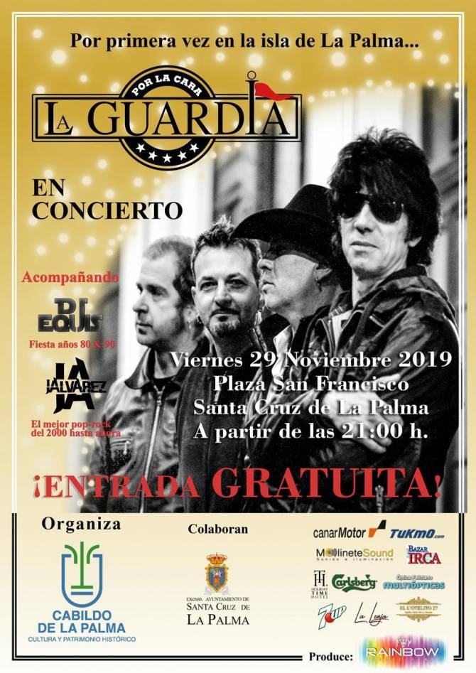 La Concejalía de Fiestas del Ayuntamiento de Santa Cruz de La Palma invita a los vecinos y vecinas de la ciudad a acudir al concierto de La Guardia que se celebrará el próximo día 29 de noviembre en la Plaza de San Francisco a partir de las 21:00 horas.