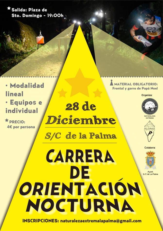 El plazo de inscripción para la Carrera de Orientación Nocturna, que organiza Naturaleza Extrema La Palma y cuenta con la colaboración de la Concejalía de Deportes del Ayuntamiento de Santa Cruz de La Palma y del Club Deportivo Aldake Extreme, comienza el próximo 28 de noviembre.
