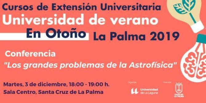 La Universidad de Verano en Otoño en La Palma que financia el Cabildo de La Palma y organiza la Universidad de La Laguna celebrará mañana martes un nuevo acto abierto al público en general y que consistirá en una charla en la que se abordarán los grandes problemas que actualmente afronta la astrofísica.