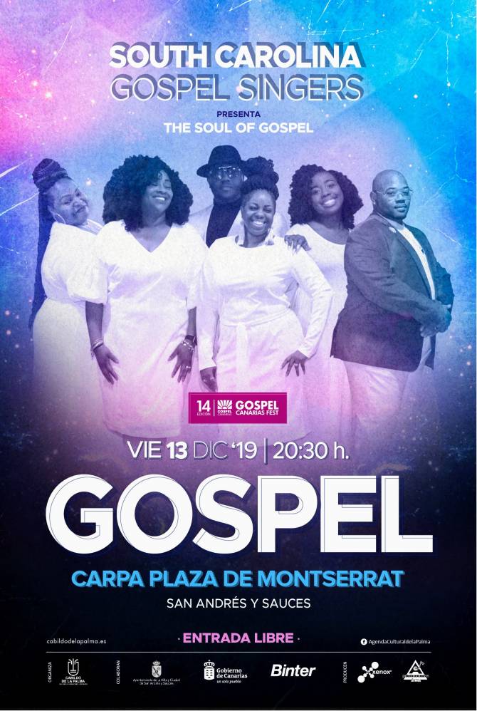 El Área de Cultura del Cabildo de La Palma, que dirige la consejera Jovita Monterrey, organiza un concierto gratuito este viernes, 13 de diciembre, en San Andrés y Sauces, con una propuesta musical de góspel. La actuación tendrá lugar a las 20:30 horas en la plaza de Montserrat y estará protagonizado por la formación South Carolina Gospel Singers.