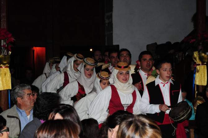 Por su parte, la celebración de la Nochebuena en Tijarafe es otra de sus tradiciones más emblemáticas. Precedida por las “misas de luz”, celebradas por los distintos barrios del municipio, la Nochebuena congrega a los vecinos y vecinas del municipio en la Iglesia de Nuestra Señora de Candelaria en torno a la medianoche del 24 de diciembre. Durante esta celebración, los pastores, provistos de castañuelas -artesanales de la zona- y al son de un tambor, una pandereta y bajo los sones de un acordeón, bailan en torno al Niño Jesús con sus vistosos sombreros engalanados y le brindan sus villancicos, en señal de alegría. El antiguo Baile de los Pastores de Tijarafe, acompañados por el tradicional toque de castañuelas, es uno de los actos más genuinos de la Navidad en la Isla de La Palma.