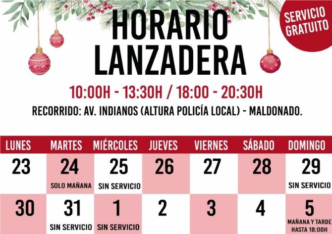 El servicio será diario, a excepción de los días 25, 29, 31 y 1. El 24 solo funcionará en horario de mañana.