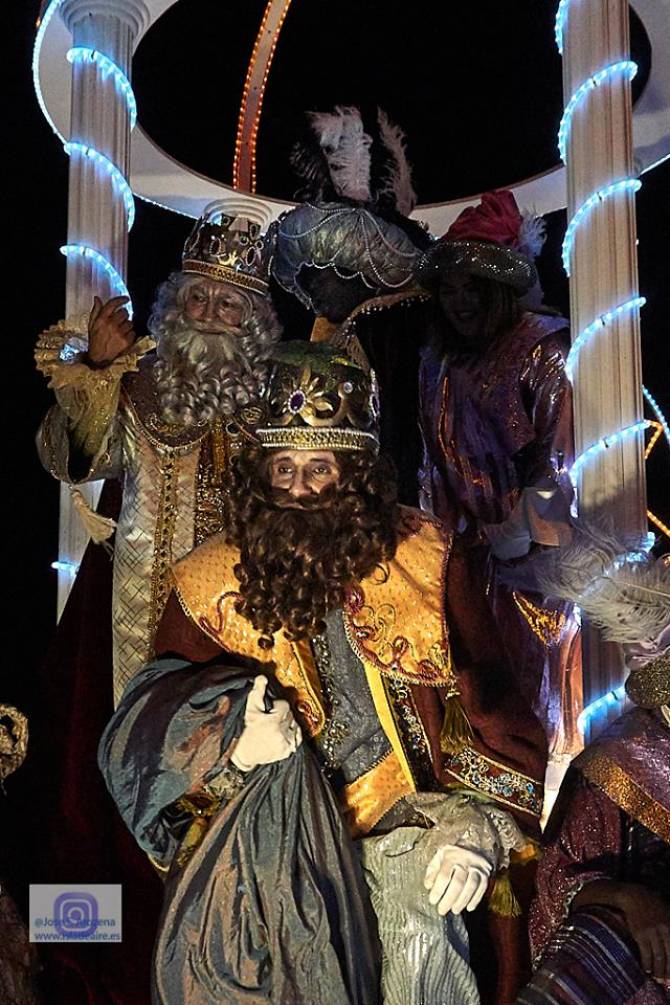 Ocho carrozas y más de 300 participantes, entre los que habrá grupos de animación, gimnastas, mascarones y bandas de música, recorrerán la ciudad desde el cruce de la Avenida Marítima con la Avenida de El Puente hasta llegar a la Cueva de Carías. La comitiva hará una parada a su paso por el Castillo de Santa Catalina, donde se podrá disfrutar de la representación del encuentro de los Reyes Magos y Herodes en su palacio. Con la llegada de la Cabalgata a su destino, tendrá lugar la XXXII representación del Auto de los Reyes Magos del dramaturgo Antonio Rodríguez López, con la colaboración de la Escuela Municipal de Teatro “Pilar Rey”.