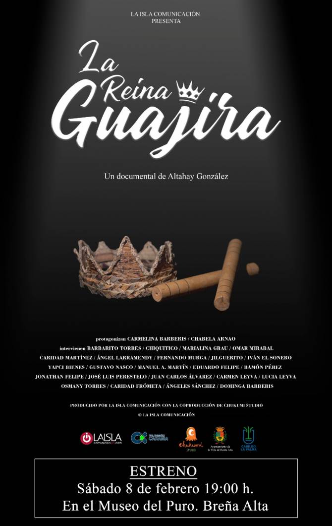 El Museo del Puro de Breña Alta acogerá de forma gratuita este sábado día 8 de febrero, a las 19:00h, el estreno del documental ‘La Reina Guajira’, una obra de La Isla Comunicación con la coproducción de Chukumi Studio, y apoyada por la Televisión Canaria, Cabildo de La Palma y Ayuntamiento de Breña Alta.