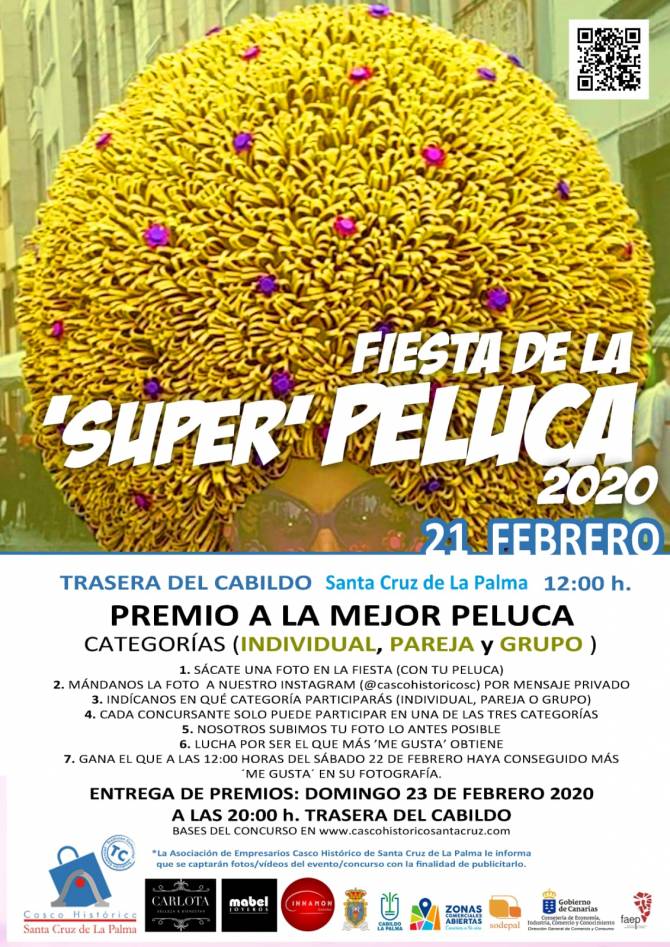 El 21 de febrero Santa Cruz de La Palma se pone la peluca y desde la Asociación de Empresarios Casco Histórico apuestan nuevamente por este acto organizando el concurso fotógrafico 'Super peluca 2020'. Se concederá premio a la mejor peluca individual, por pareja y en grupo.