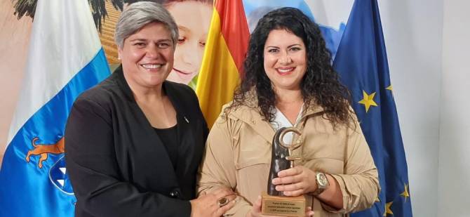 En el acto de entrega de premio que tuvo lugar el viernes, 06 de marzo, la alcaldesa de Los Llanos de Aridane, Noelia García Leal, ha acompañado a la coordinadora de Igualdad del CEIP La Laguna, Estibáliz Díaz González quien ha recibido el premio del I.C.I. de manos de la consejera de Educación del Gobierno de Canarias, María José Guerra Palmero.