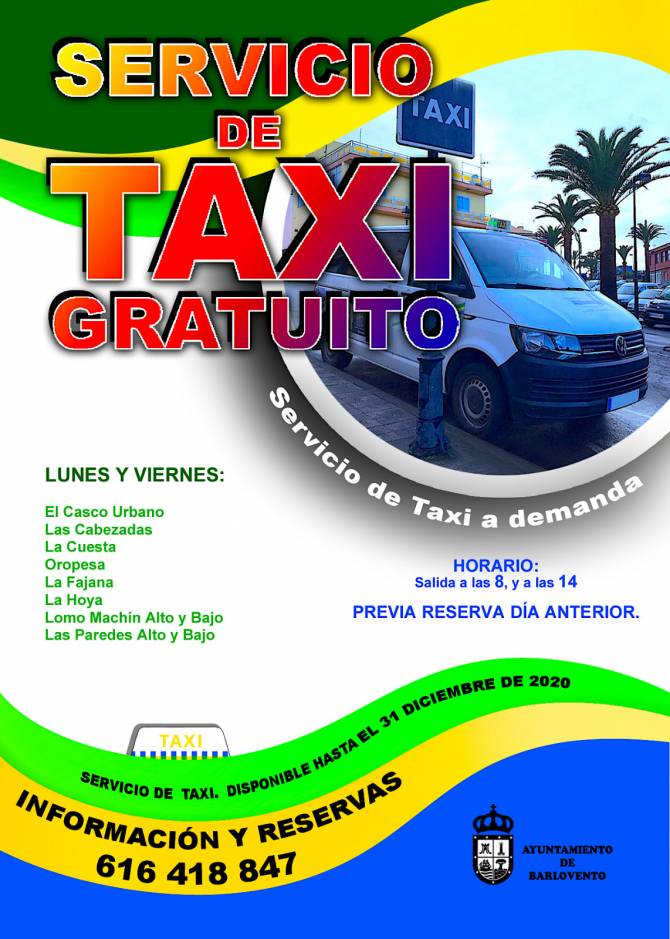 El Ayuntamiento de Barlovento pondrá a disposición de la población un servicio de taxi previa demanda, totalmente gratuito hasta el 31 de Diciembre del presente año.