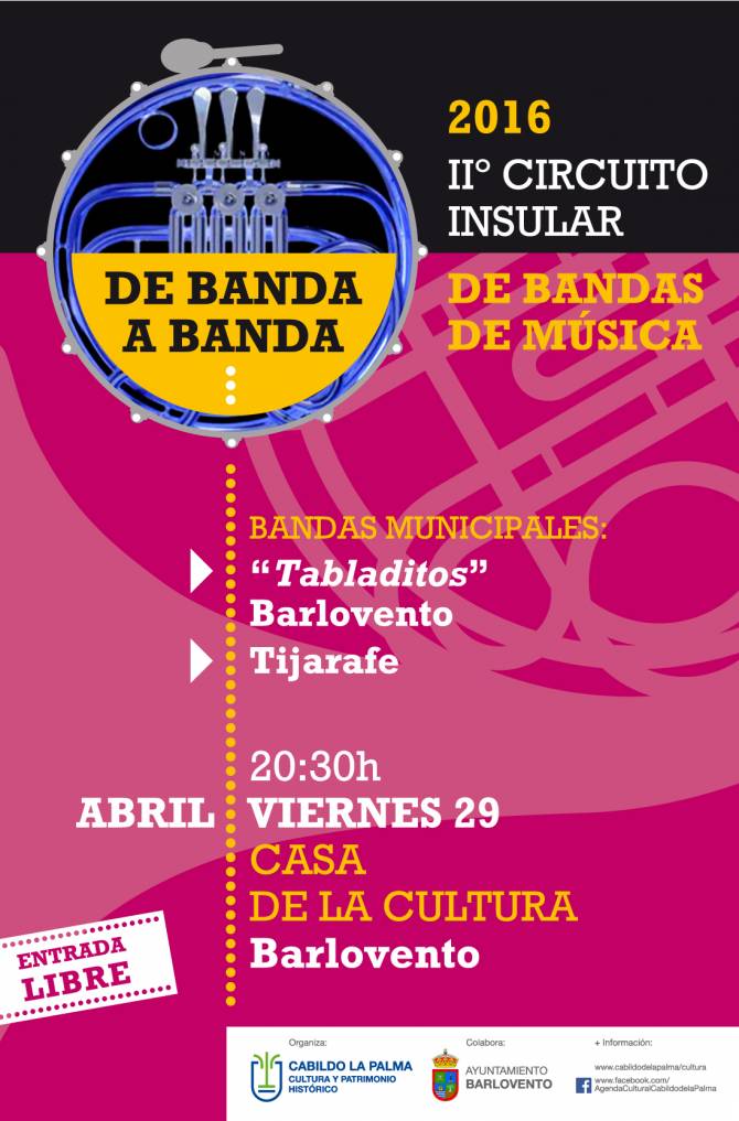 El II Circuito de Bandas Municipales de Música De Banda a Banda, que organiza el Cabildo Insular de La Palma a través de la Consejería de Cultura y Patrimonio Histórico, llega este viernes a los municipios de Barlovento, El Paso y Santa Cruz de La Palma.
