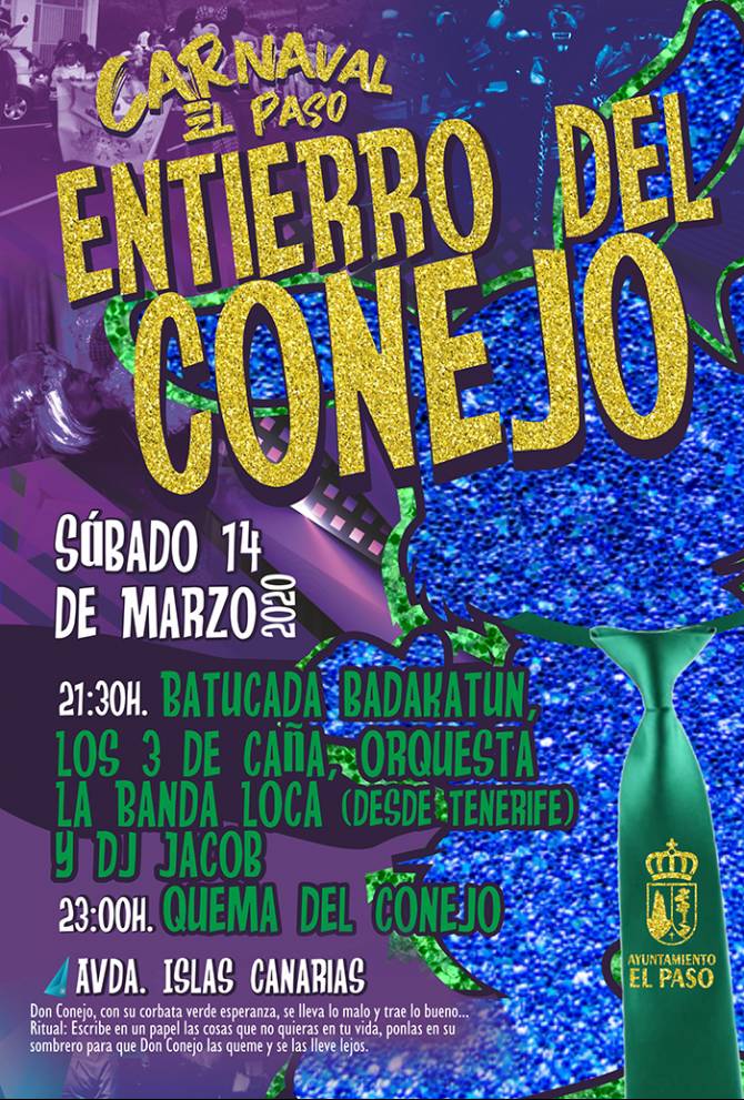 Hay que recordar que al ser el único municipio de la isla de la palma que no tiene costa, la figura del conejo sustituye a la habitual sardina a la hora de la celebración que pone fin a los carnavales de El Paso. Don Conejo, con su corbata verde esperanza, se lleva lo malo y trae lo bueno. El ritual consiste en escribir en un papel las cosas que no quieres en tu vida, ponerlas en su sombrero para que Don Conejo las queme y se las lleve lejos.